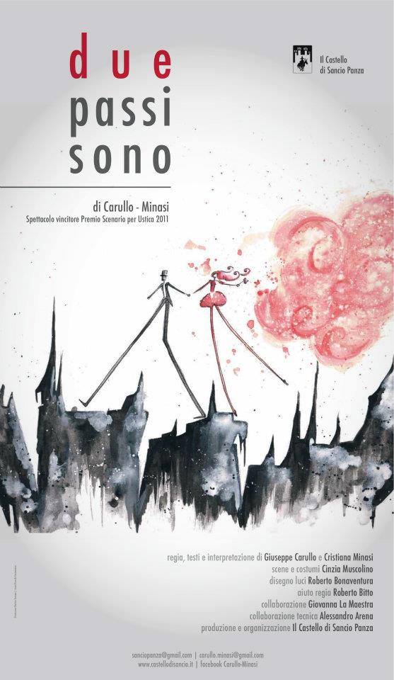 A LECCE, presso i Cantieri Teatrali Koreja, alle ore 20.45 arrivano Carullo-Minasi con il pluripremiato spettacolo DUE PASSI SONO. Spettacolo vincitore Premio Il Teatro Nudo di Teresa Pomodoro 2013; Premio In-Box 2012; Premio Scenario per Ustica 2011, quest’ultimo per l’impegno civile Laddove la quotidianità ha preso le sembianze della patologia, due piccoli giganti combattono una dolce e buffa battaglia per imparare a non fuggire dalla vita, usando le armi della poesia e dell’autoironia. Ingresso € 15 (intero) - € 8 (ridotto under 30 e over 60) - € 12 (ridotto convenzioni) - € 4 (Ridotto Adisu). E' possibile acquistare i biglietto: on-line su https://www.biglietto.it/newacquisto/titoli.asp?ide=140# info e prenotazioni: 0832.242000